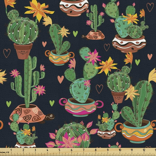 Cactus Print Fabric By The Yard Colorful Layout Of Different Shapes Of Cacti With Flowers Decorative Upholstery Fabric For Chairs Home Accents Charcoal Grey Multicolor By Ambesonne Walmart Com