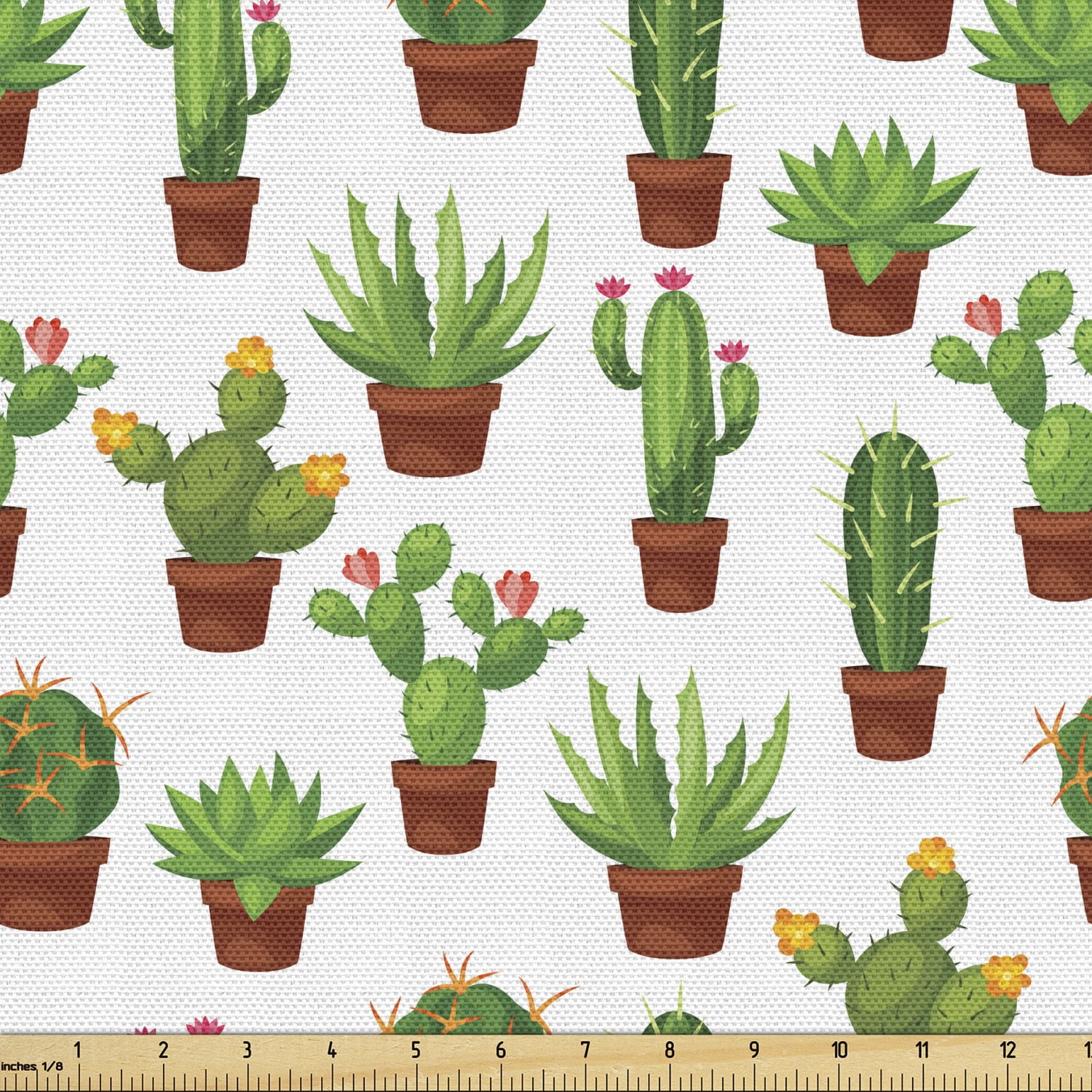 Cactus Fabric By The Yard Abstract Floral Pattern With Vases Pots Botany Spring Season Cartoon Decorative Upholstery Fabric For Sofas Home Accents 10 Yards Green Brown Marigold By Ambesonne Walmart Com